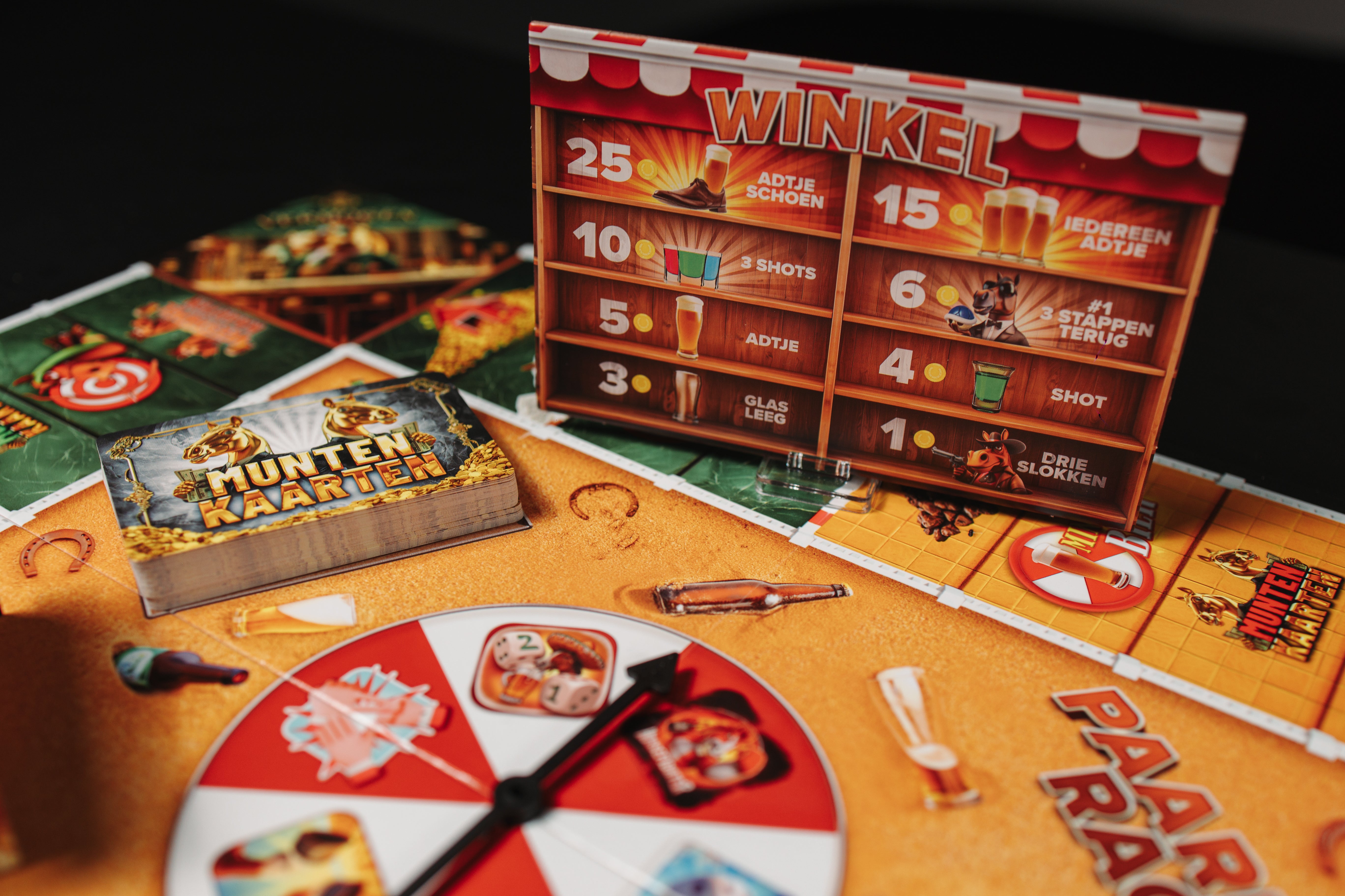 Paardenrace is een waanzinnig humoristisch drankspel waarin niemand veilig is. Heb je zoiets bij jezelf: 'Ik houd helemaal niet van paarden?!' Mooi, wij ook niet! Maar wat we wél leuk vinden, is bier drinken en je vrienden de vernieling in helpen. Dit drankspel heeft alles wat je nodig hebt: chaos, competitie en een flinke dosis gelach. Laat je meeslepen door de waanzinnige mini-games en verrassingen die je avond naar een ander level tillen. Paardenrace is niet zomaar een spel, dit bordspel is een strijd!